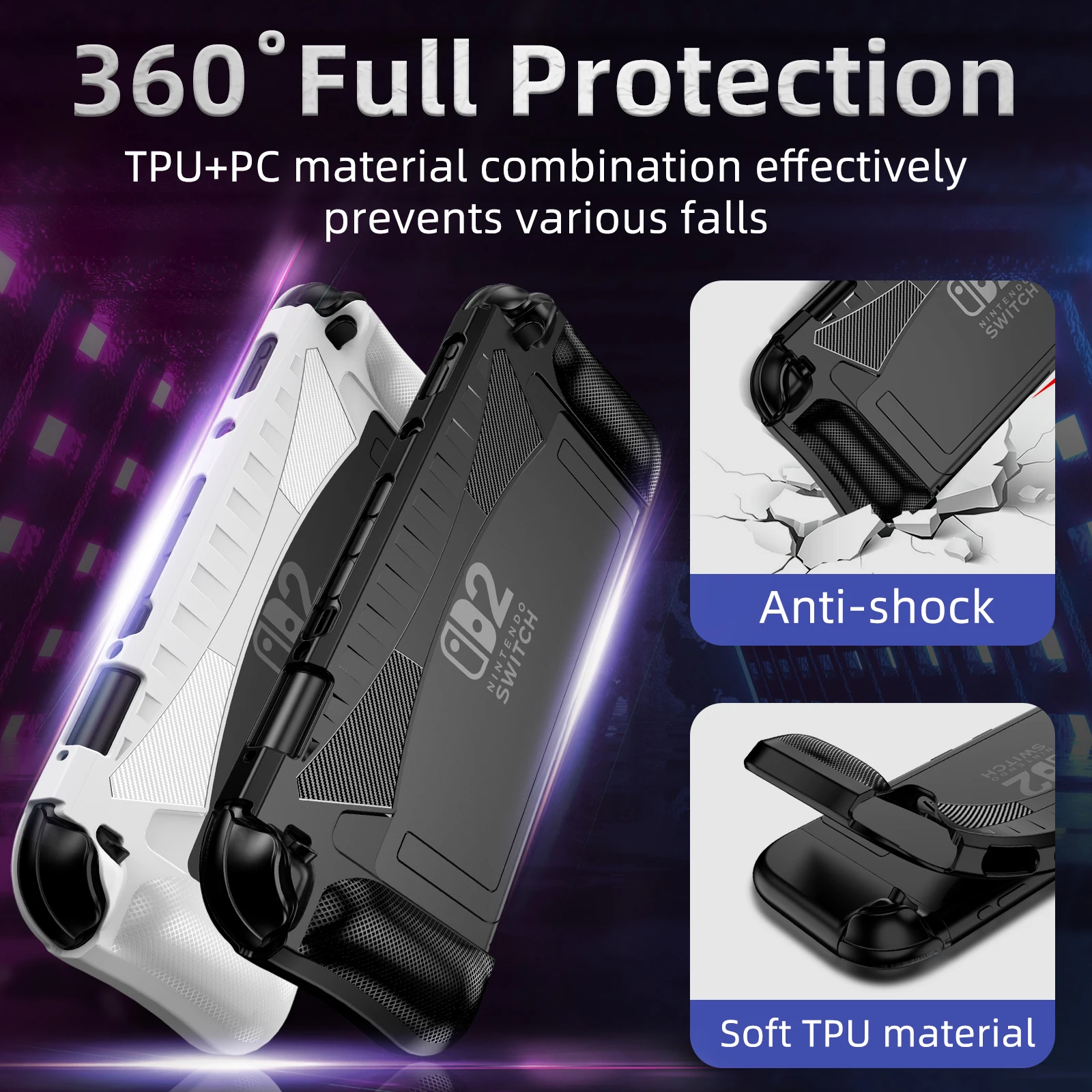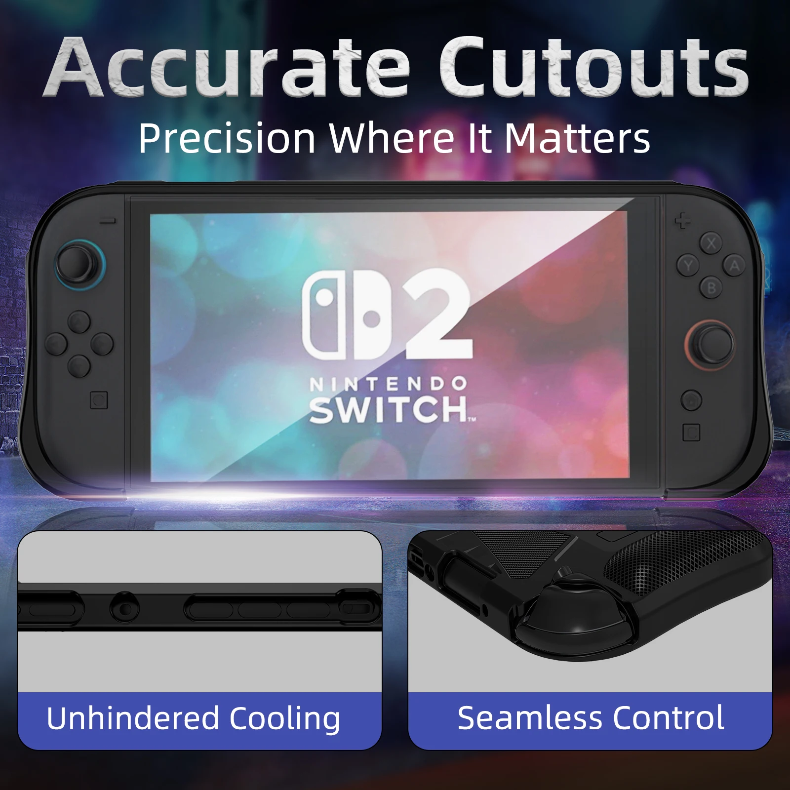 All-in-One Switch 2 Accessories Kit: Offer complete protection for your Nintendo Switch 2 -1x Switch 2 Carrying Case, 1x Protective Cover, 8x Thumb Caps, and 1x Tempered Glass Screen Protectors. (Console NOT included)