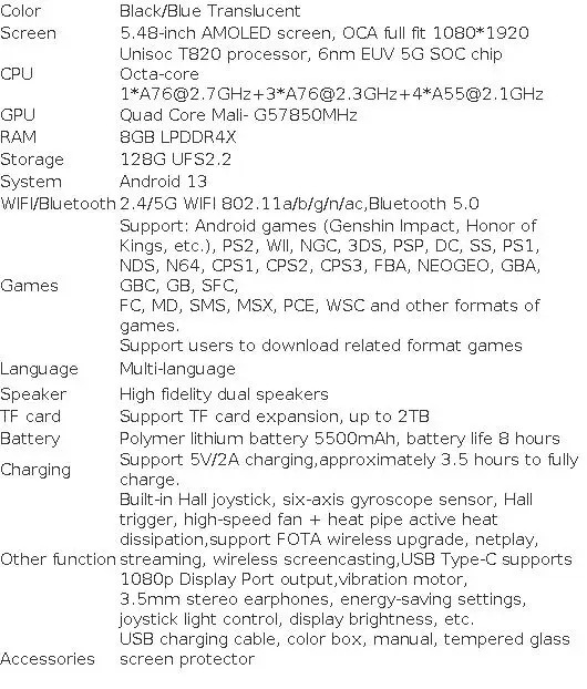 | Expandable storage | Support TF card expansion, up to 2TB |