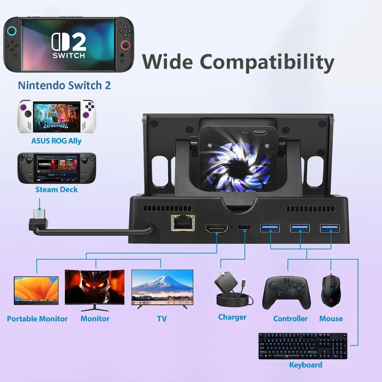 Foldable Docking Station 3 USB Ports Dock Station 4K@60Hz PD100W Gigabit Ethernet for Nintendo Switch 2 Accessories