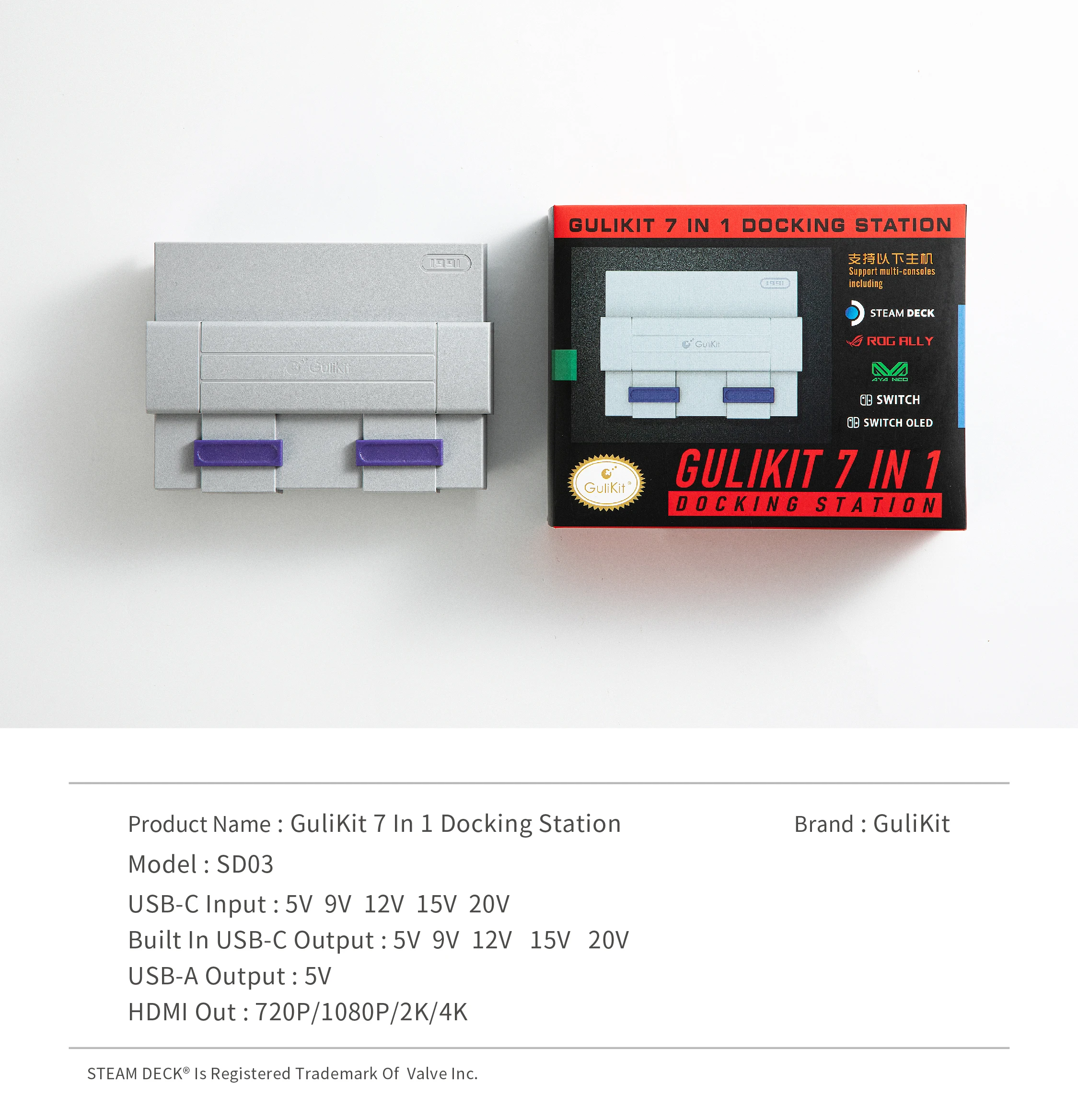 Gulikit 7 in 1 Docking Station SD03 Dock Set for Steam Deck/AYANEO/Switch/Switch Oled/ROG Ally consoles Game Console Accessories
