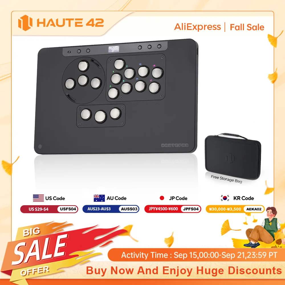 Haute42 Arcade Leverless Controller HautePad X Stickless Fightstick For PC/PS4/PS5 /Switch /Steam Button Rim Hitbox Controller With Ambient RGB Replaceable LP/ MX Module