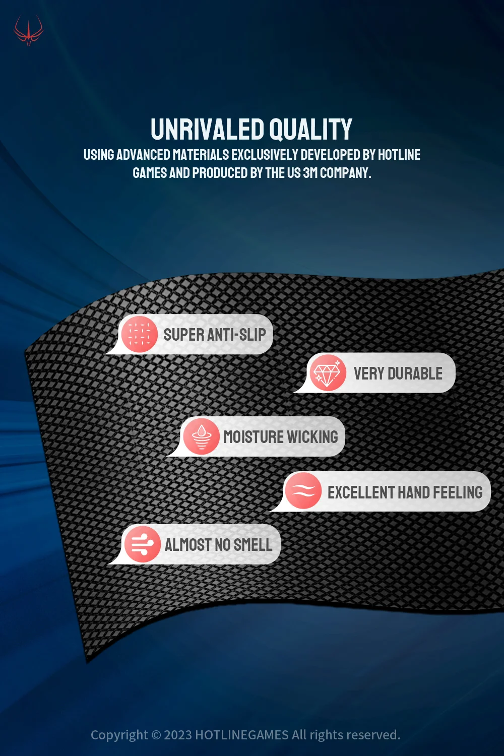 EXCELLENT ANTI-SLIP & WATER ABSORPTION PERFORMANCE – Using advanced materials exclusively developed by Hotline Games and produced by the US 3M company, with a unique diamond texture to provide an excellent anti-slip performance! The special cut texture can not only absorb the sweat of your palms quickly, but also control the surface airflow to ensure your hands are cool and dry, and reducing the fatigue caused by long-term operation!