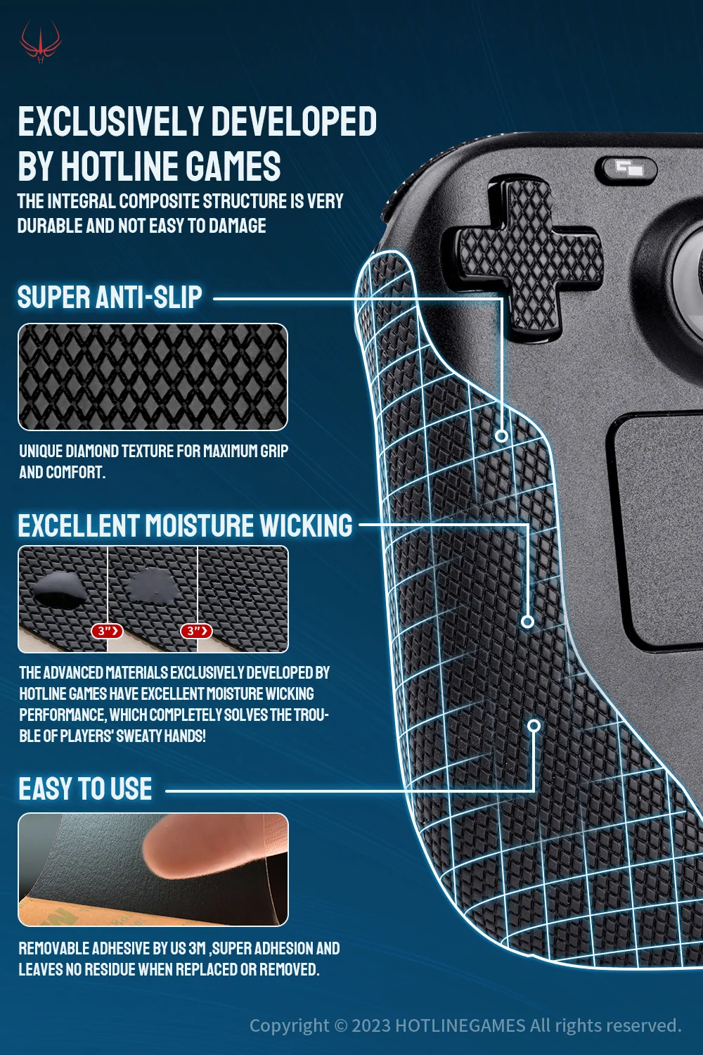 HOTLINE GAMES 2.0 Plus Controller Grip Tape Compatible With Steam Deck Handle Grips,Non-Slip,Sweat-Absorbent(Player Version)