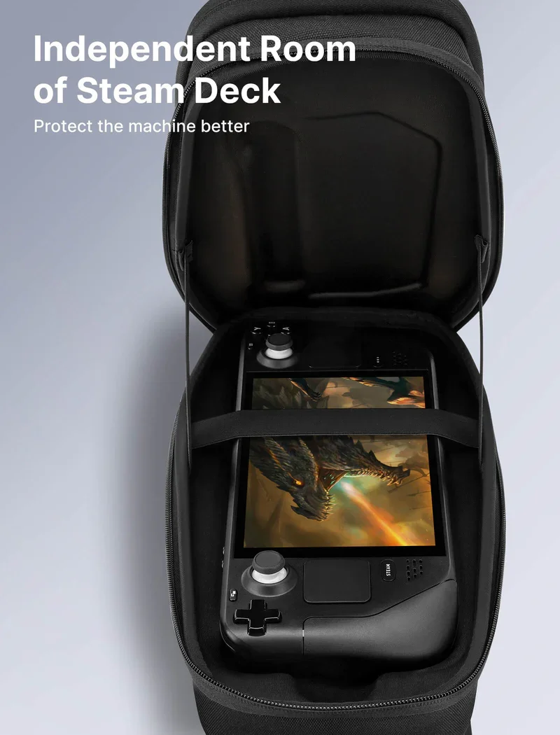 Smart Storage Solution: Multiple-layer space that meets different demand, including unique cabin for Steam Deck/OLED/ROG Ally/X, separated rooms for different sizes of goods such as JSAUX Steam Deck docking station, powerbank, AC adapter, cellphones, USB cables, Swicth, etc.