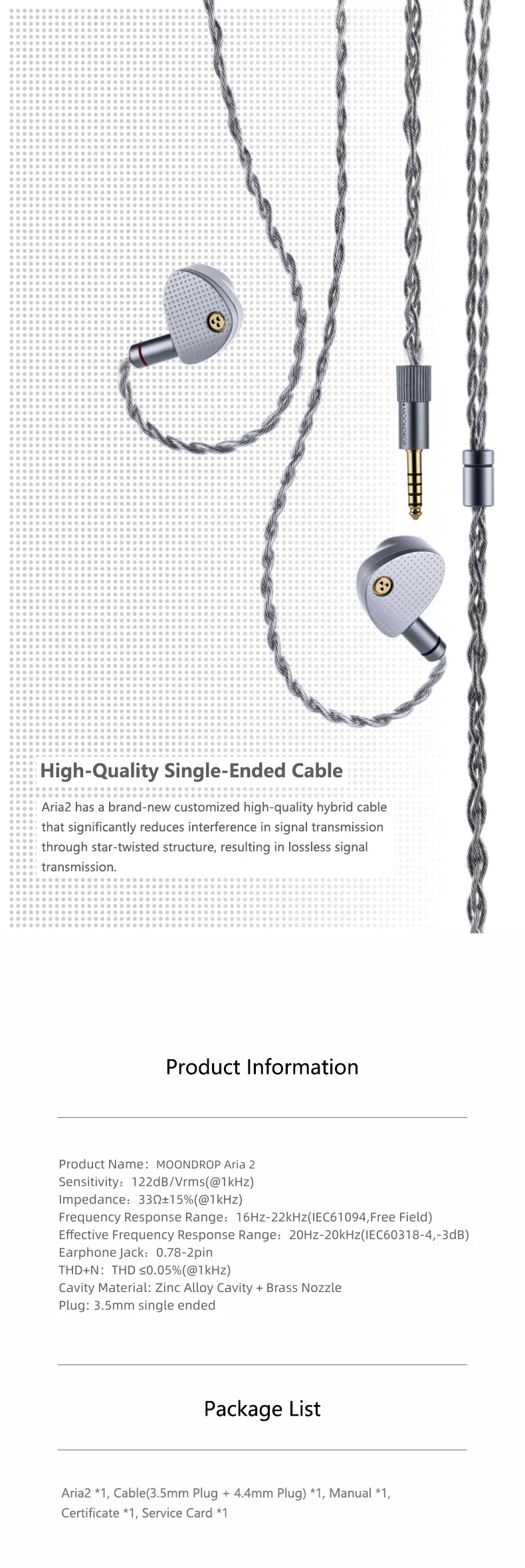 MoonDrop ARIA2 Dynamic Driver In-ear Earphone IEM High Performance Earbuds with 0.78mm 2 Pin Detachable Cable Headset ARIA 2
