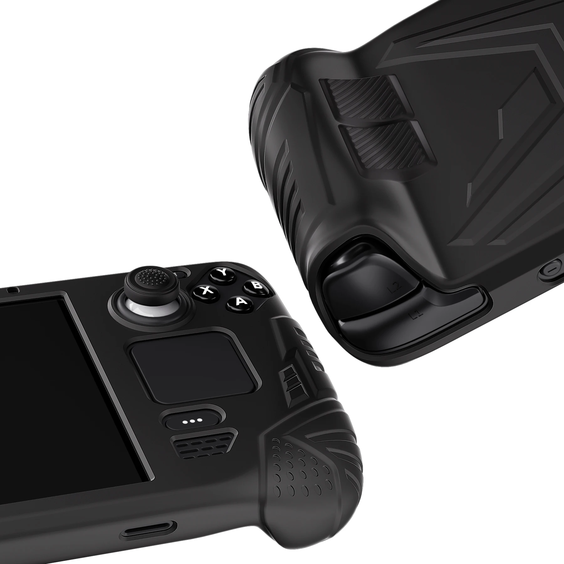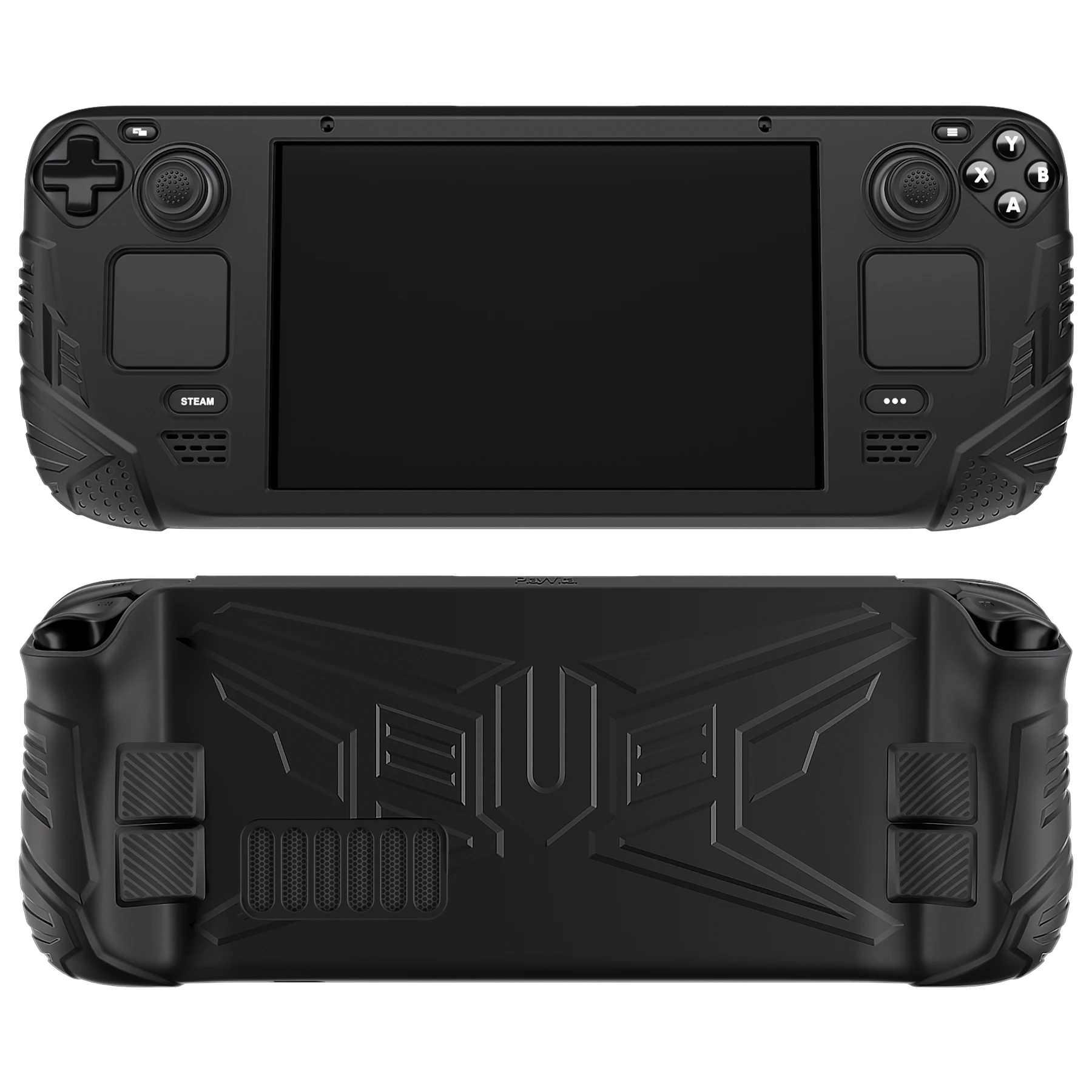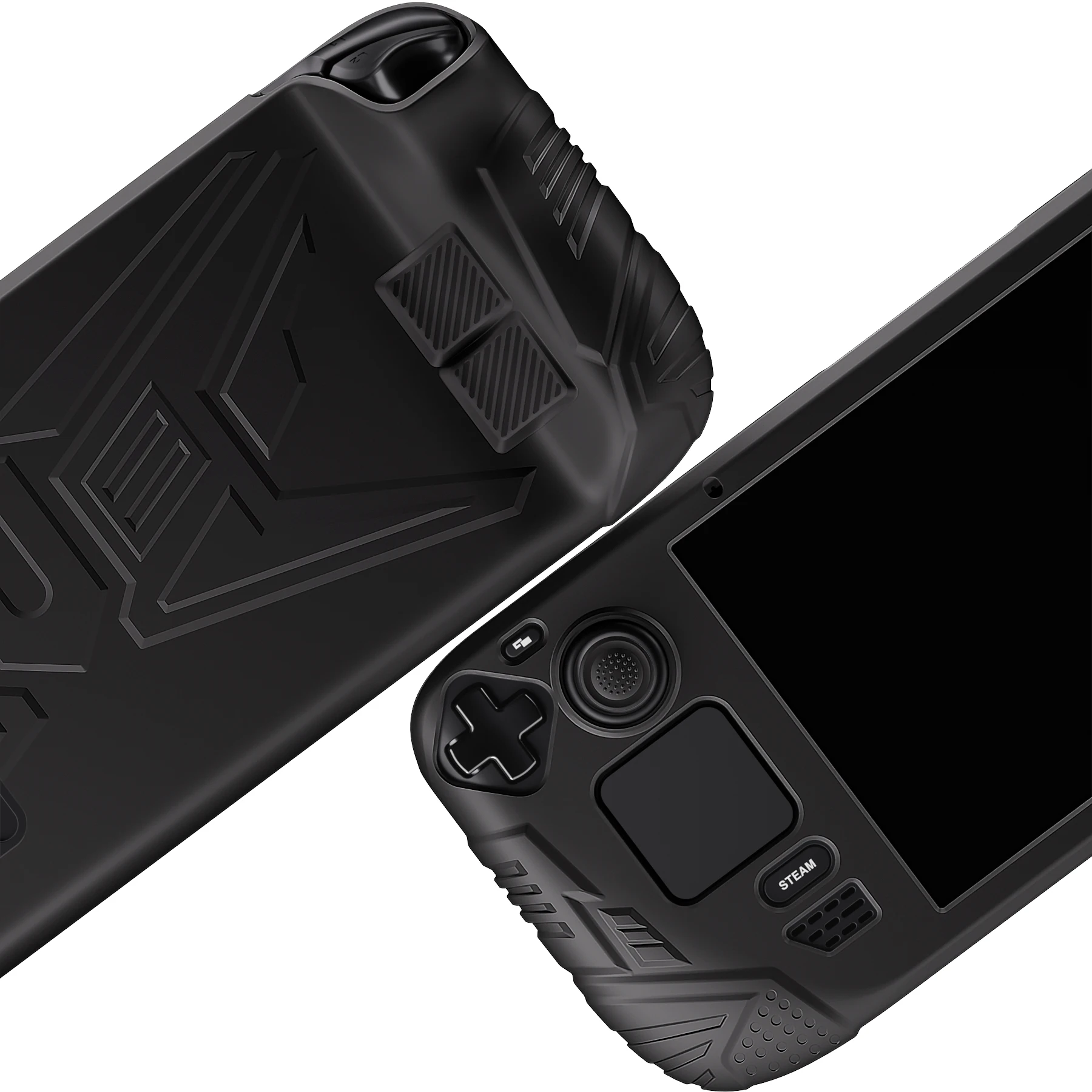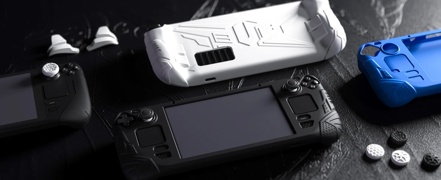 Compatible Model:Only For Steam Deck LCDProduct Feature:Ergonomic case cover with back button enhancement designed ensuring a better gaming experience.Excellent grip stability and visual appeal, we adopt European medieval armor pattern designed and upgrade the back button area with extra enhancement tactile feel, providing enhanced unity and durability.Made of premium soft silicon material, soft in touch, well-protected your device from accidental scratches, bumps of daily use, providing you a comfortable grip touch and reliable protection.The precisely positioned cutouts provide unobstructed access to all features, compatible with Steam Deck Dock.A pair of thumb grip caps is provided to match.Note: The glow in dark version can be glowing after being exposed to the sun or light for 20~30 minutes.The luminous time within 10 minutes!Package Includes:1 pc Protective Case for Steam Deck1 pair of Thumb Grip CapsNote: the console is not included!