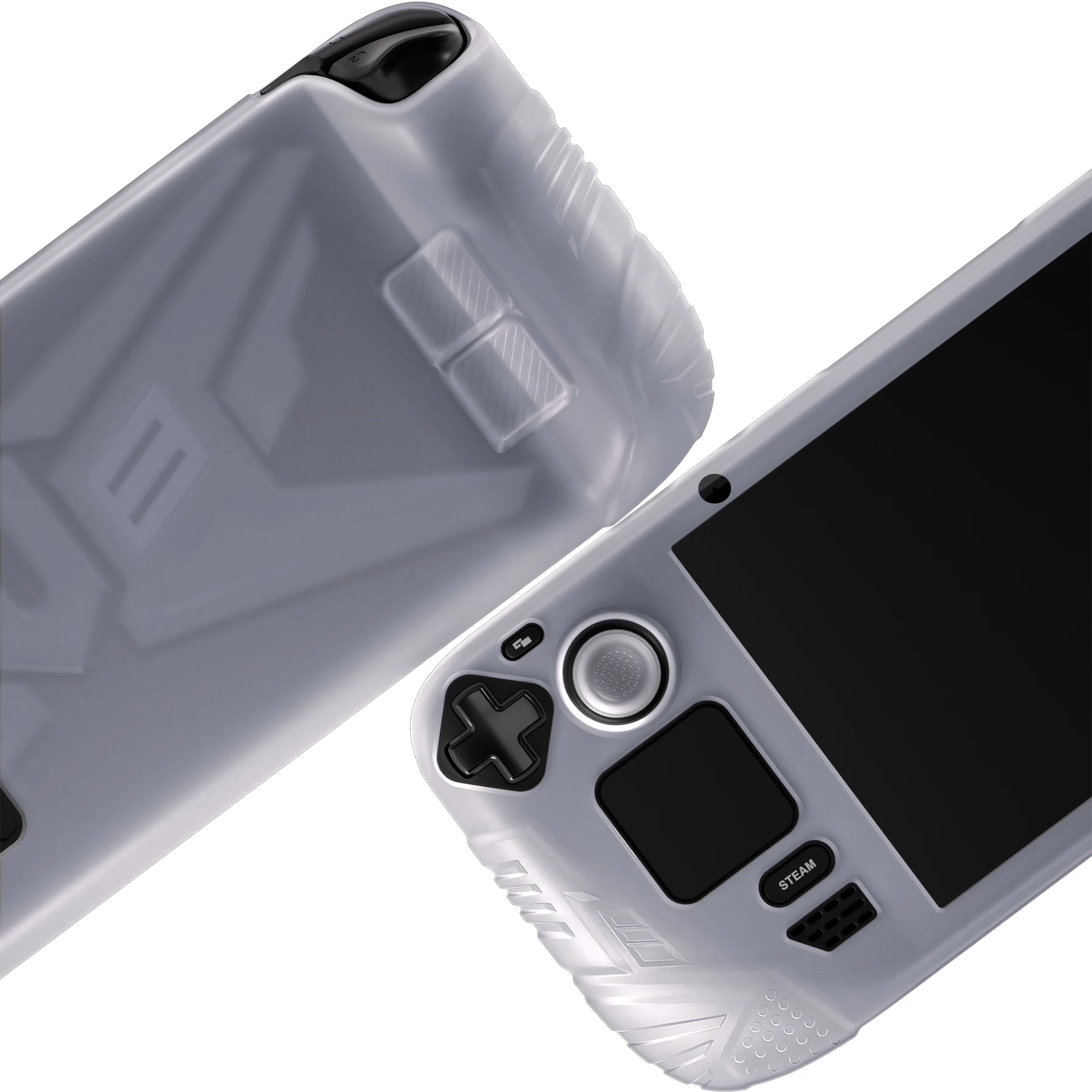 PlayVital Armor Protective Case for Steam Deck LCD, Soft Silicone Case W/Back Button Enhancement Designed & Thumb Grips -White