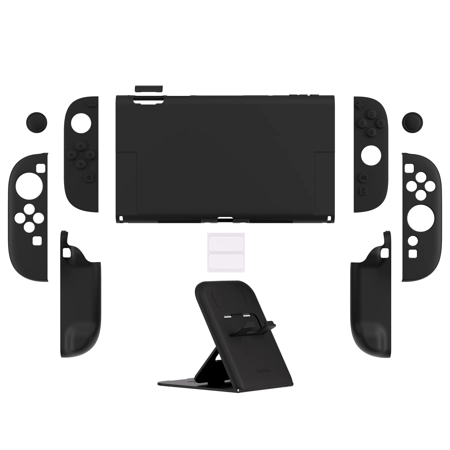 Ergonomic grip design reduces hand fatigue in handheld mode. Precision-cut case supports seamless docking and charging without removal, and Joy-Cons can detach freely.