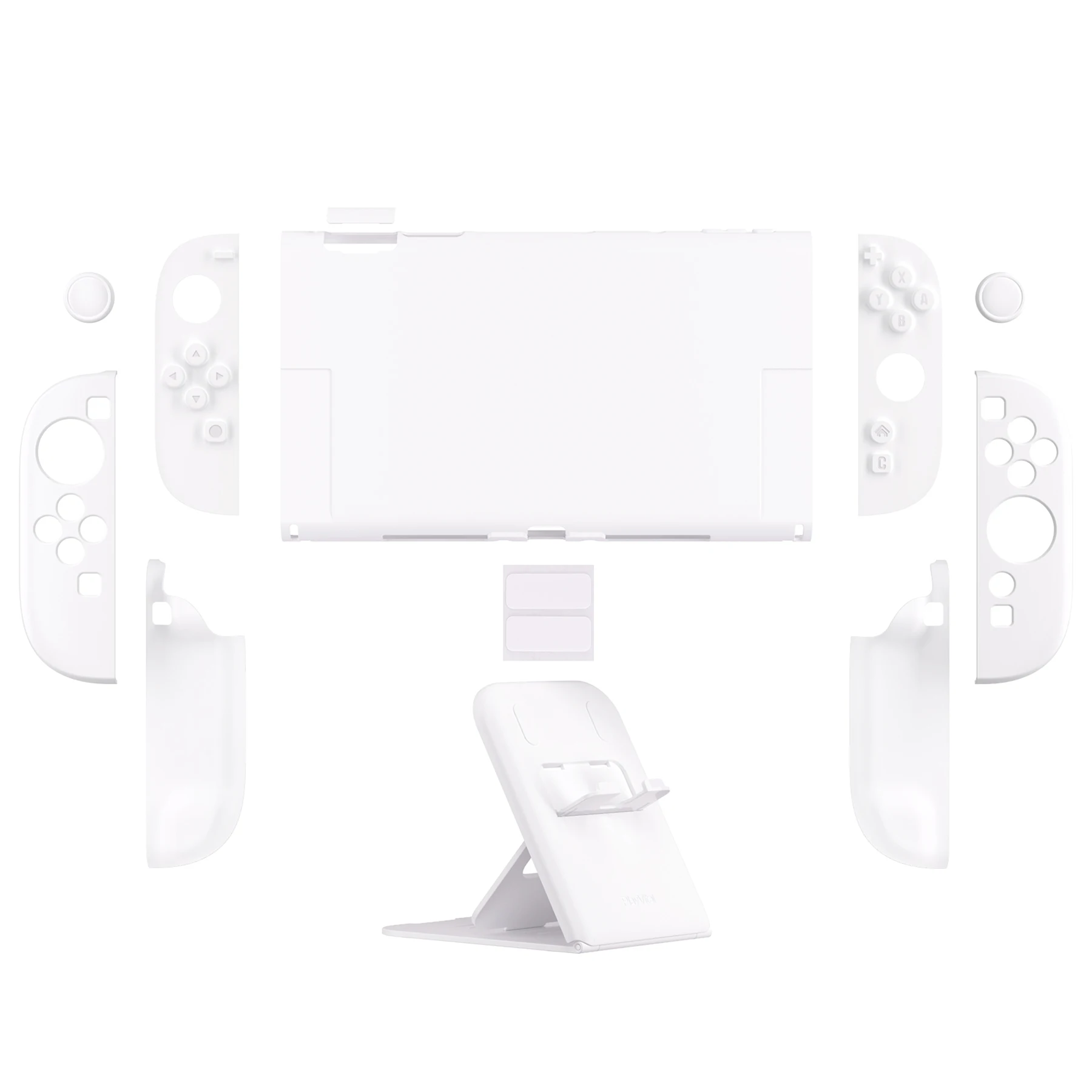 Ergonomic grip design reduces hand fatigue in handheld mode. Precision-cut case supports seamless docking and charging without removal, and Joy-Cons can detach freely.