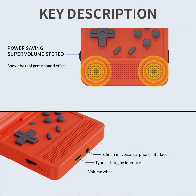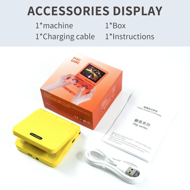 POWKIDDY v90 3-Inch IPS Screen Flip Handheld Console Dual Open System Game Console 16 Simulators Retro PS1 Kids Gift 3D New Game