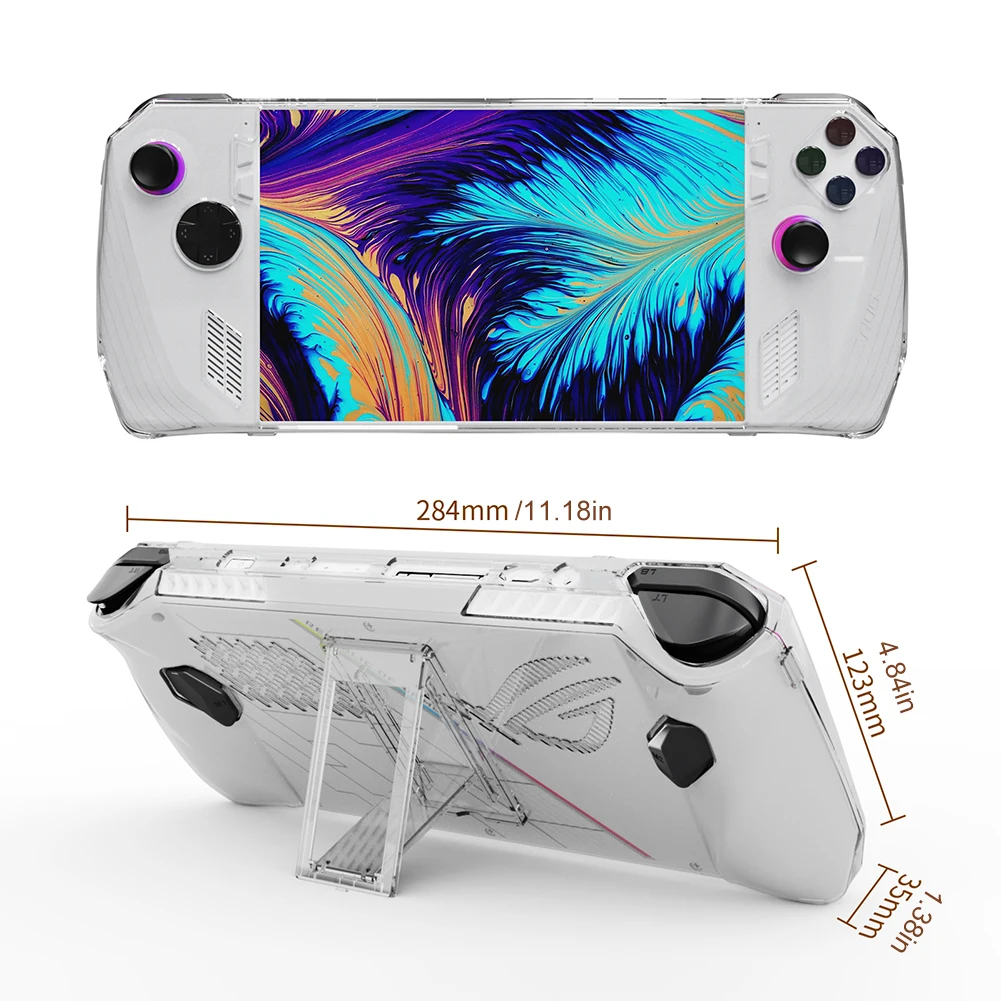 Transparent Protective Case Game Console Protector Cover Shockproof Anti-fall Anti-collision with Bracket Stand for Asus ROG Ally Game Console
