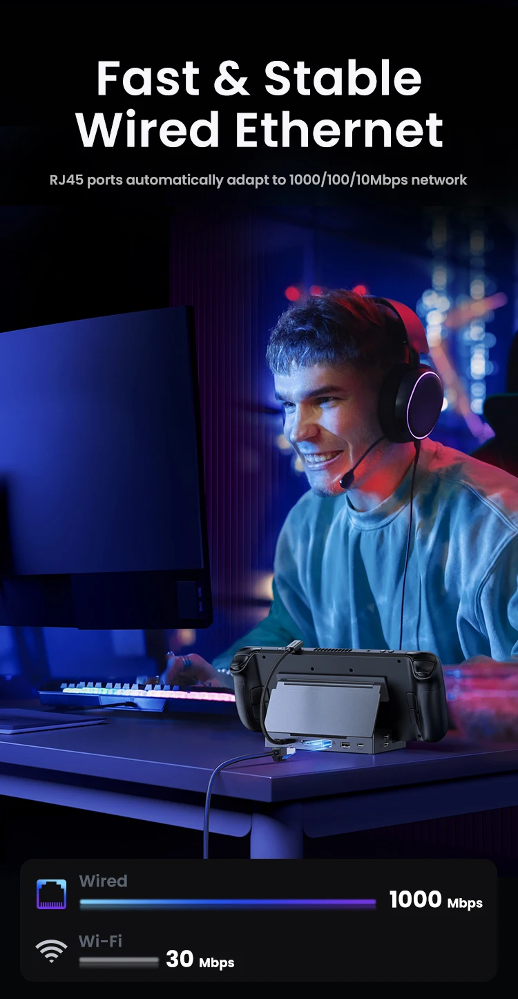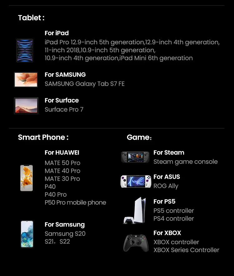 Works with Steam Deck,Asus ROG Ally,LEGION GO,OneXPlayer,AYA NEO,AYA Odin,Nintendo Switch,Laptop,Tablet,Phone……