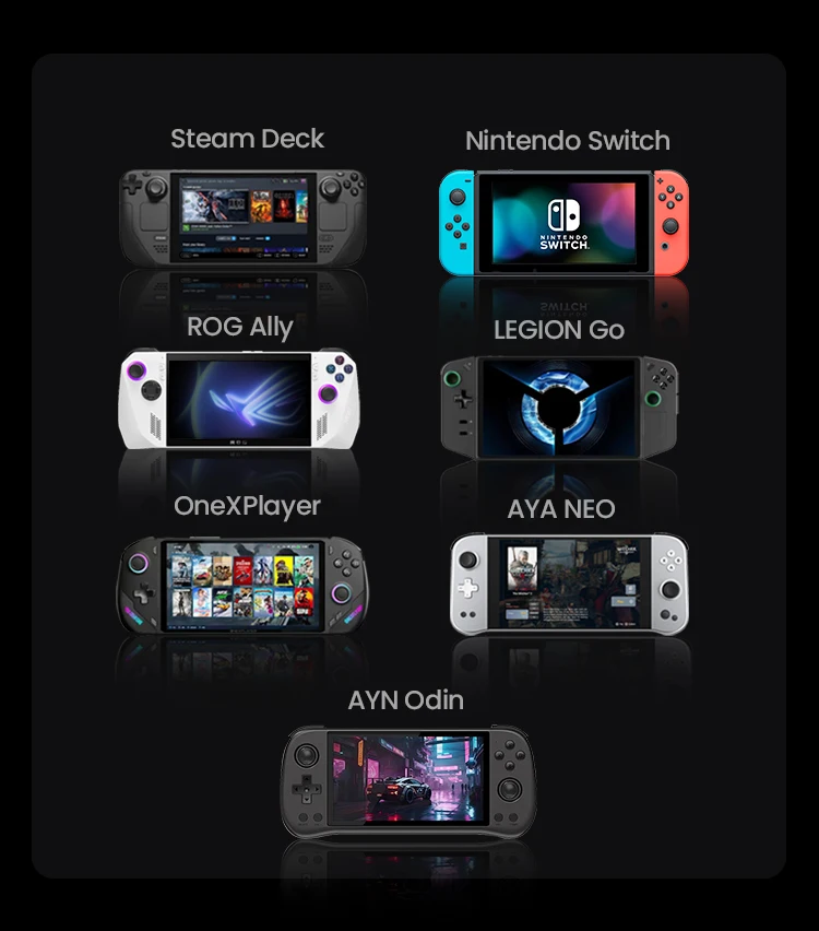 | Universal Compatibility | Steam Deck, Nintend0 Switch, ROG Ally, LEGION Go, OneXPlayer, AYA NEO, AYA Odin…… |