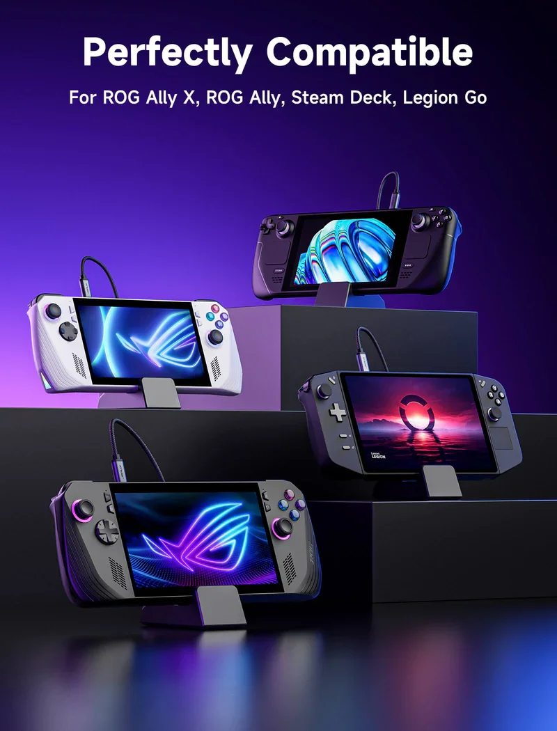 Perfect Compatibility: Compatible with ROG Ally X, ROG Ally, Steam Deck, and Legion Go gaming consoles. Supports 100W max power delivery, which is enough to charge your ROG Ally X, ROG Ally, Steam Deck LCD/OLED, or Legion Go at full speed when paired with the original charger