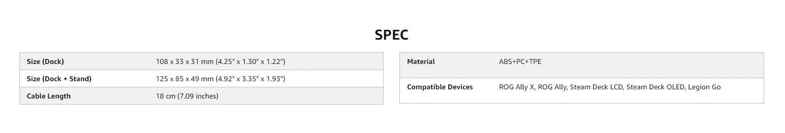 | Model Number | USB C 6-in-1 Docking Station for ROG Ally X |