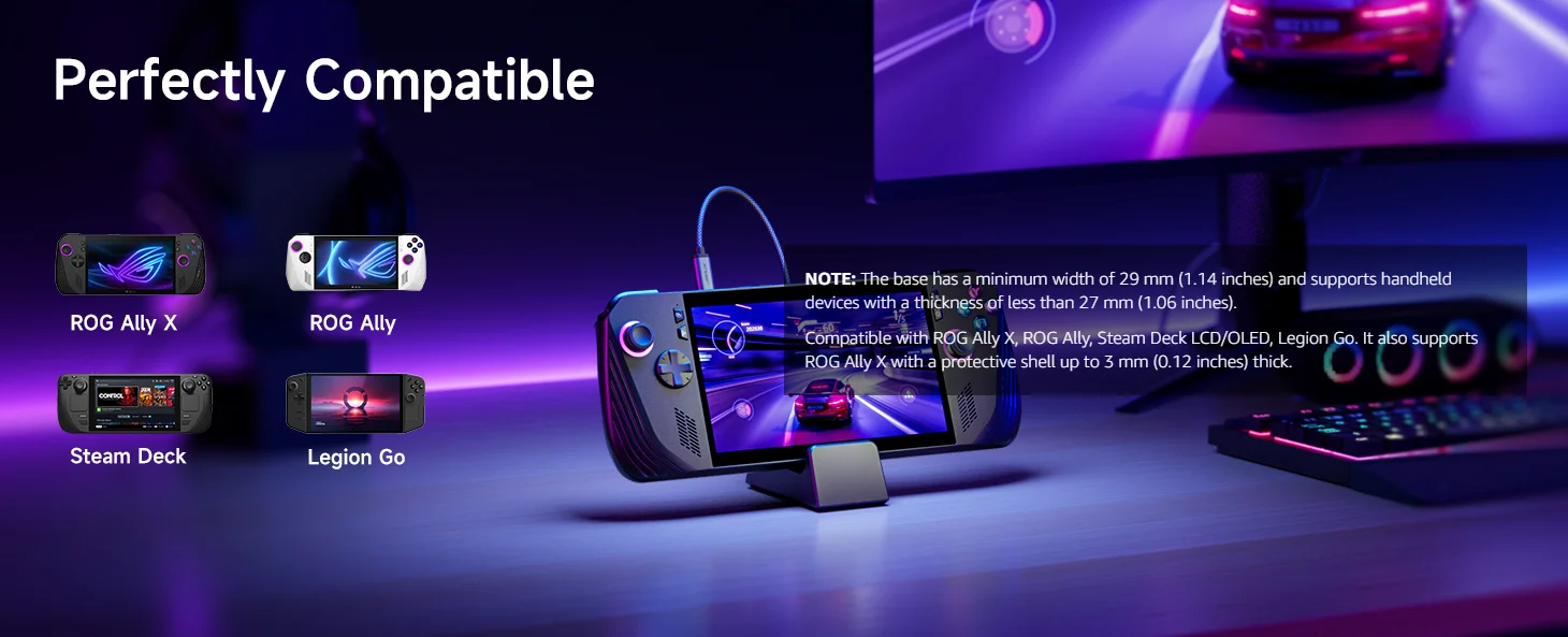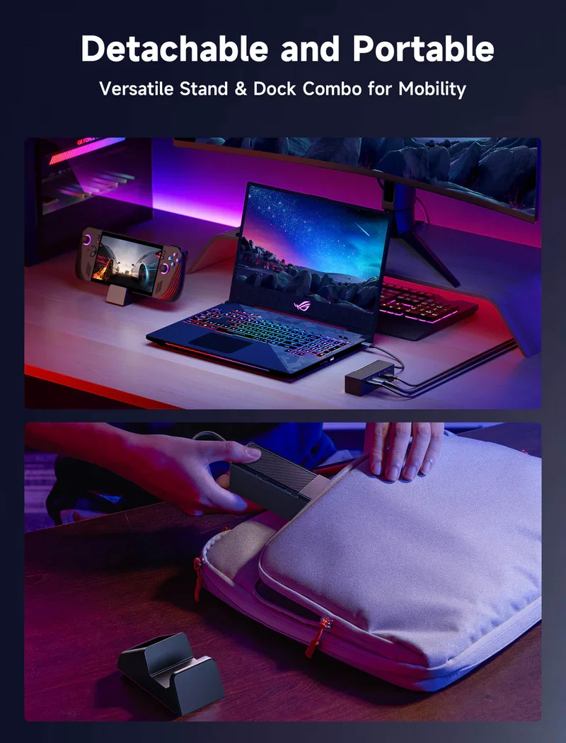 Modular Docking Station: The JSAUX docking station provides dual functionality. Use it with the gaming console directly on the dock, or detach the base for standalone use as a stand, offering flexibility for both desktop and portable setups