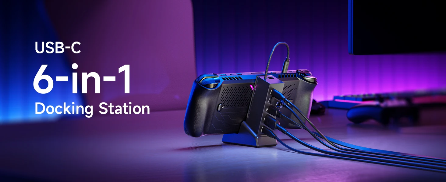 USB C 6-in-1 Docking Station for ROG Ally X, ROG Ally X Dock with HDMI 4K@120Hz,Gigabit Ethernet,PD 100W Charging for ROG Ally X